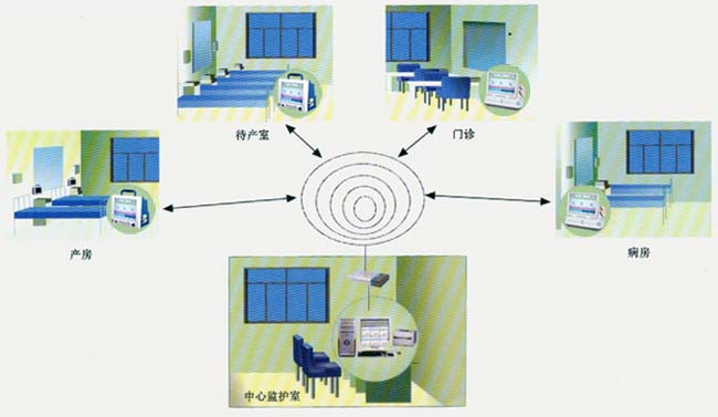 無(wú)線(xiàn)中央監(jiān)護(hù)系統(tǒng)示意圖